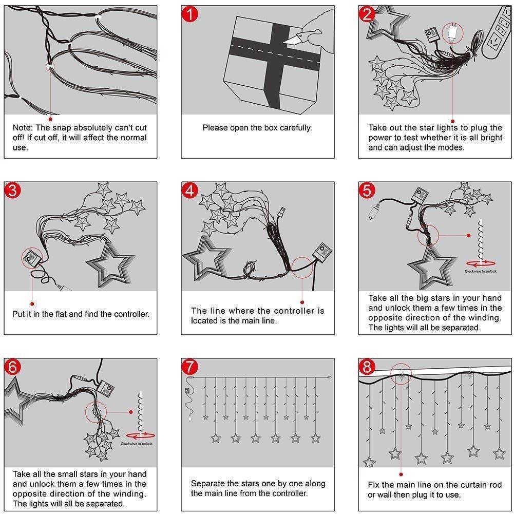 12 Stars 138 Led Curtain String Lights Window Curtain Lights With 8 Flashing Modes Decoration For Christmas, Wedding, Party, Home, Patio Lawn Warm jkb-1014
