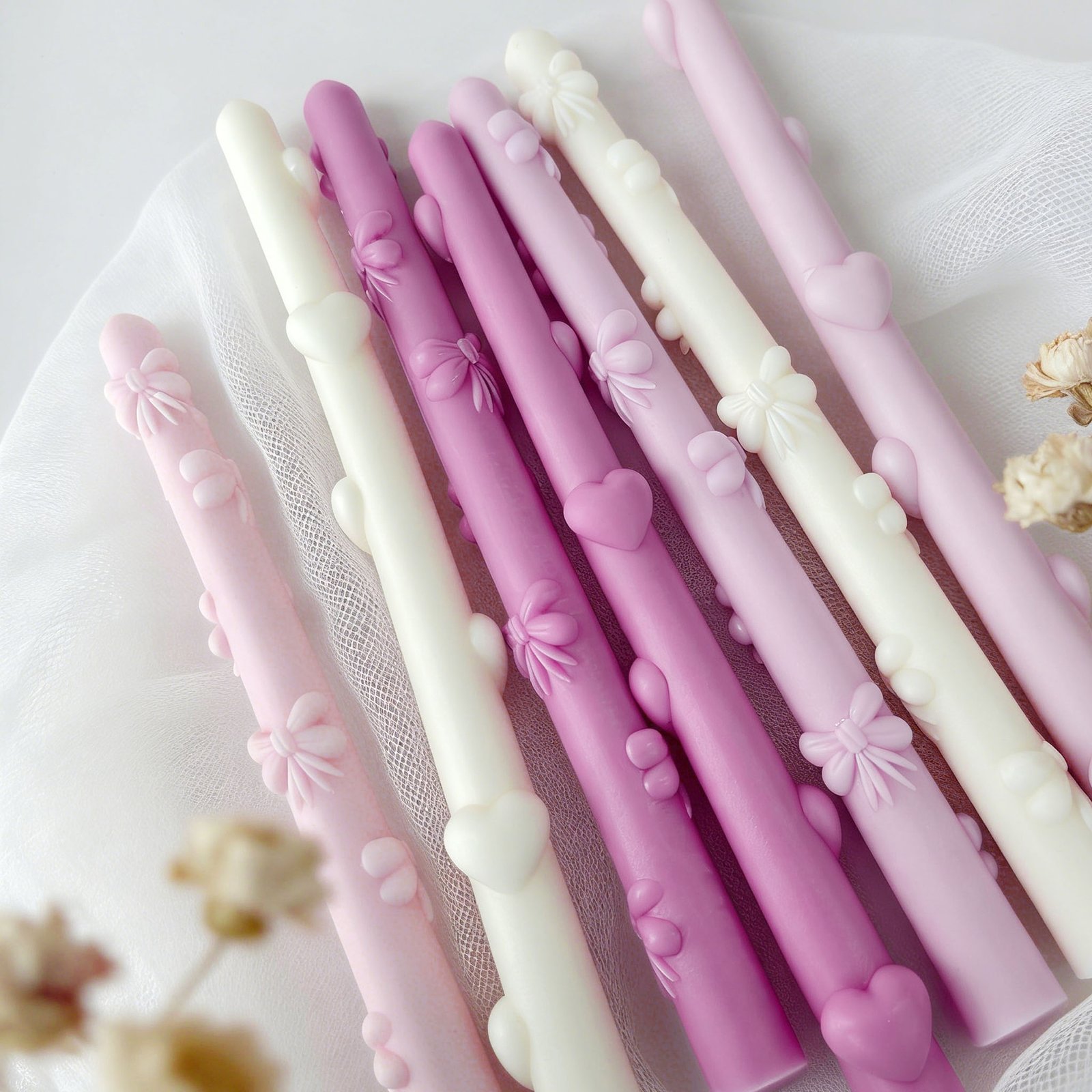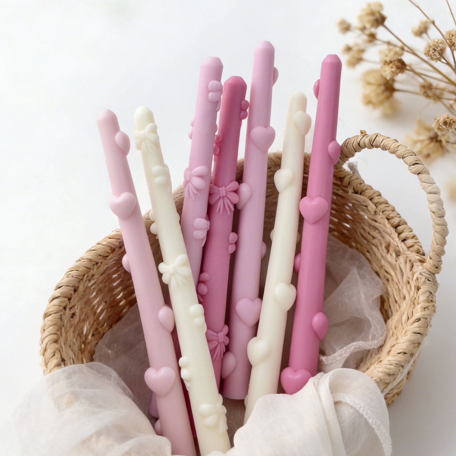 Create trendy aesthetic candles with this Vedini long stick silicone mold (heart & bow design). Ideal for scented candles, resin art, and DIY crafts.