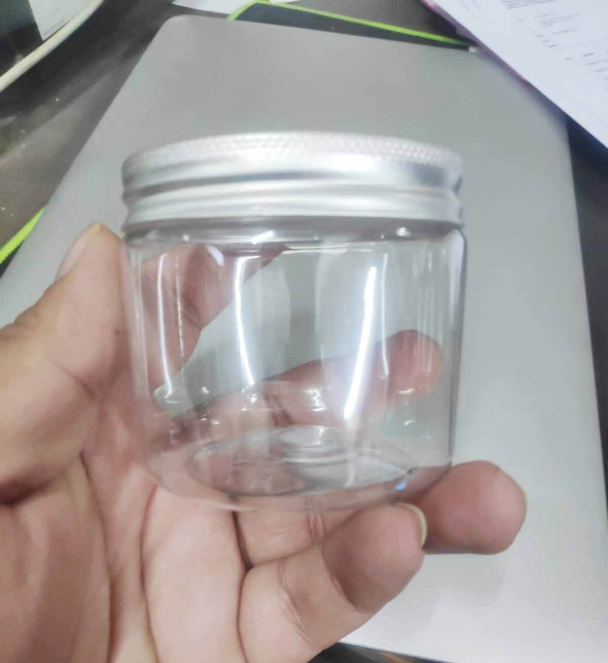 This is a 200ml plastic jar made from PET (polyethylene terephthalate) material. It is commonly used for packaging food and household items. The jar is lightweight, durable, and can be easily shaped into various forms. It is also a clear material, making it easy to see the contents inside.