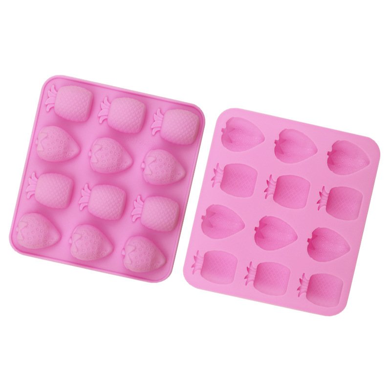 This multi cavity silicone mold makes 12 tiny fruits- 6 strawberries and 6 pineapples. It is a the perfect size for making candies, chocolates and more.