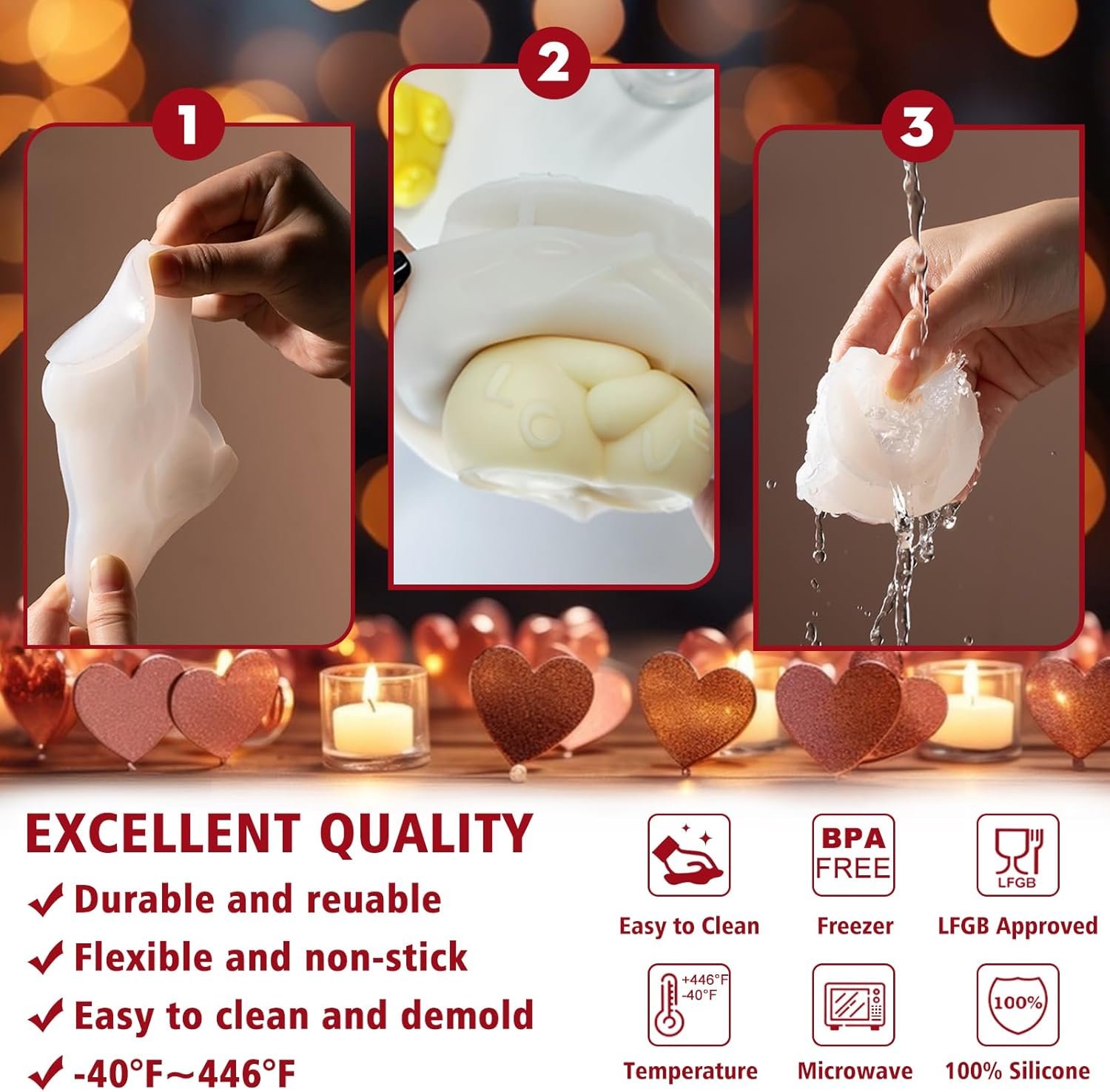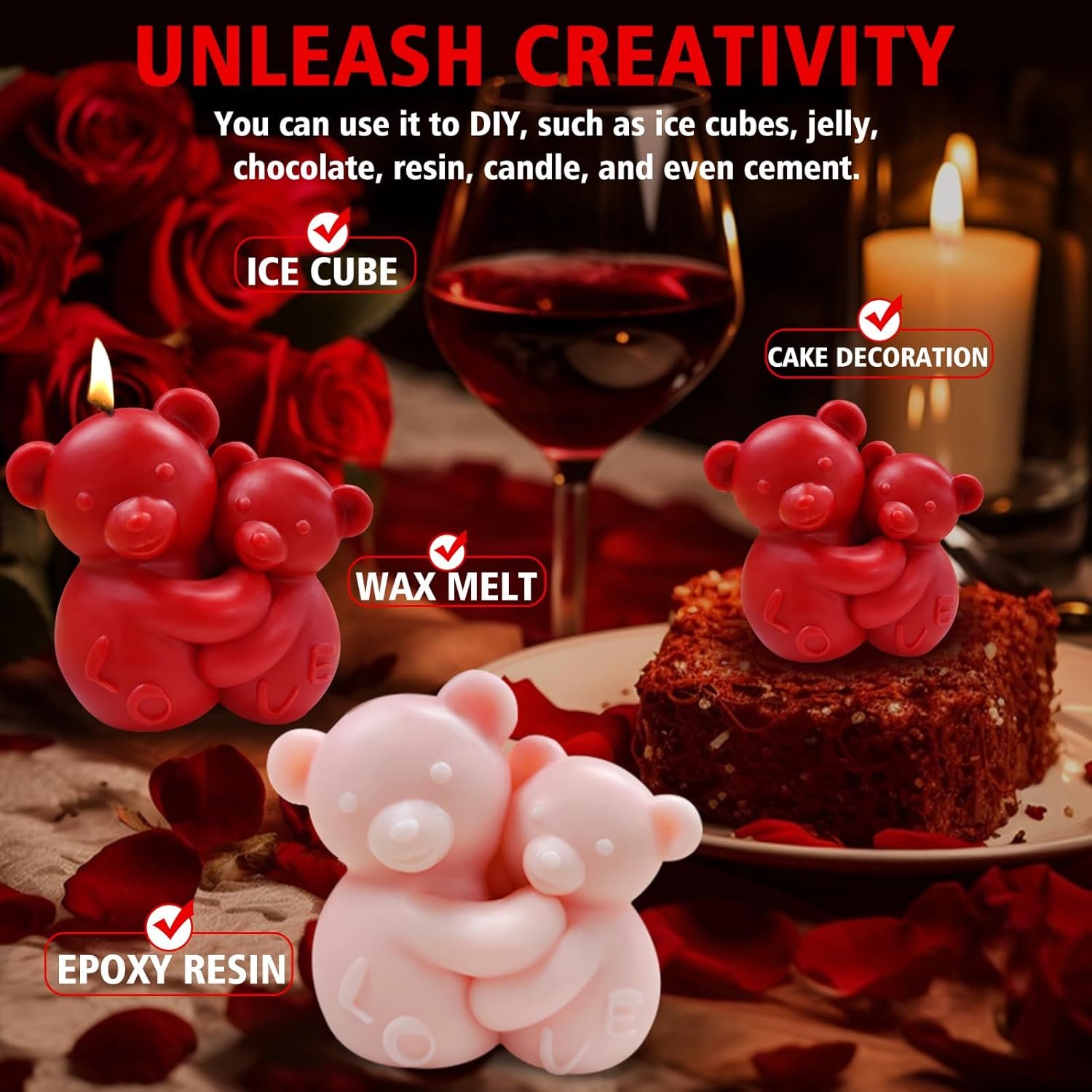 Vedini 3D Bear Candle Molds, Valentine’s Day Silicone Molds, Mold for Handmade Soaps DIY Paint Your Own Heart Bear or Cuddle Bear Candle,Home Gifts Making Wax Ceramic Clay Mother’s Day Gift Birthday Gift JKB-6229