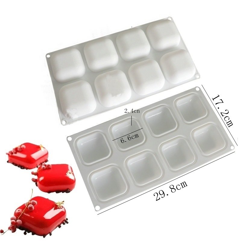 Vedini 8 even square pillow jelly pudding mousse cake mold For Soap and Candle JKB-3151