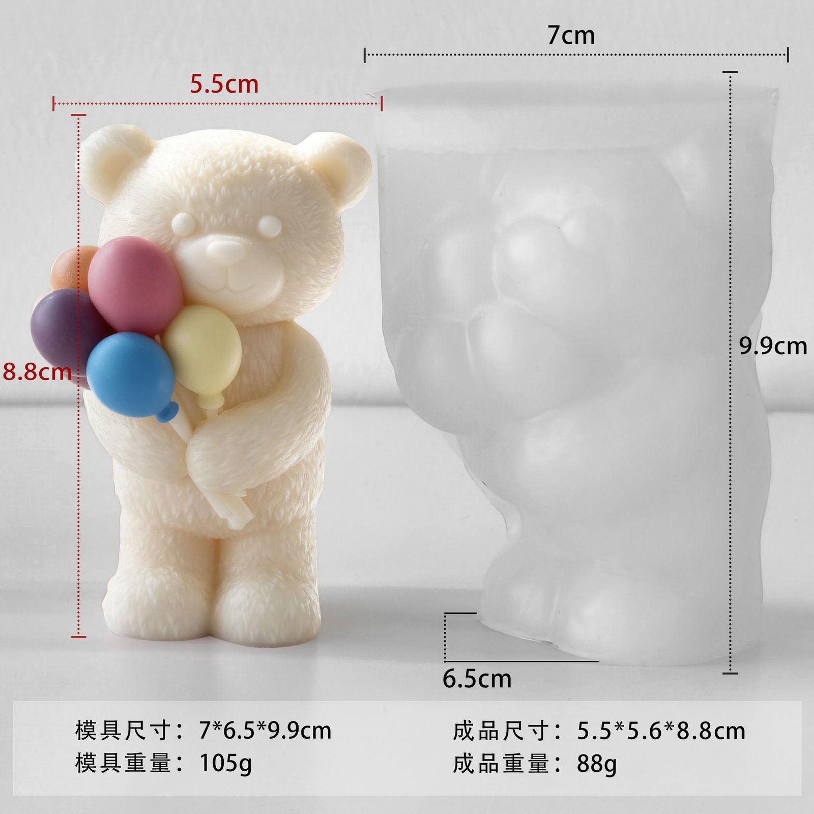 Vedini Balloon Bear Scented Candle Silicone Mold DIY Cartoon Bear Plaster Resin Animal Candle JKB-3168