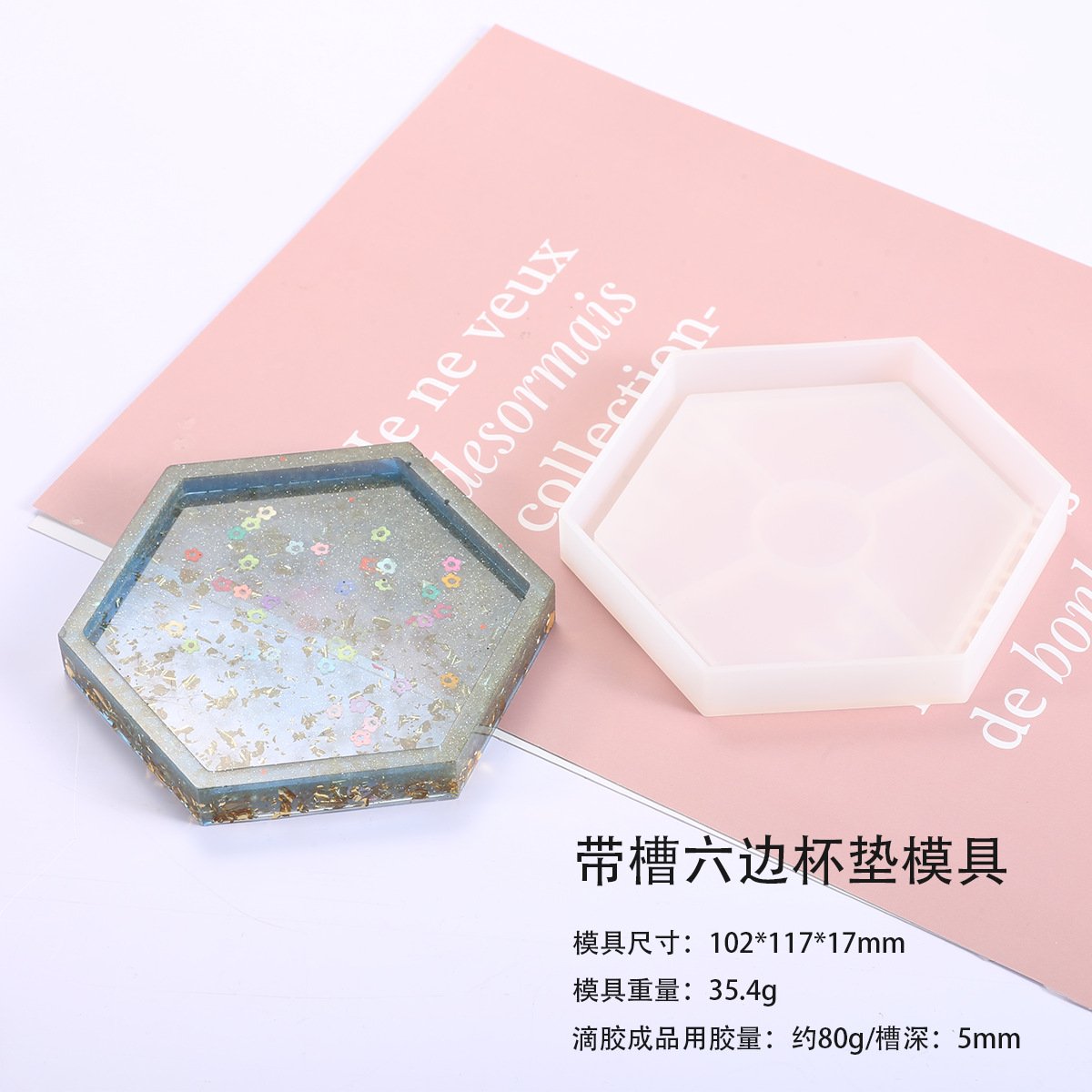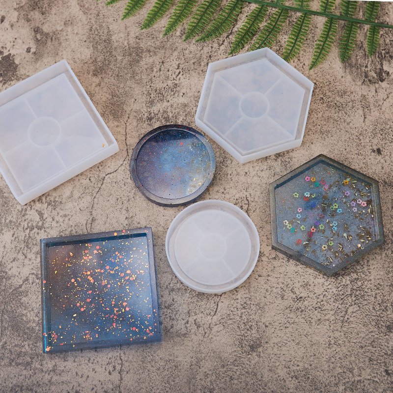 Vedini Concrete and Resin hexagonal, round, square grooved coasters, creative crystal resin plaster silicon Mold JKB-3148