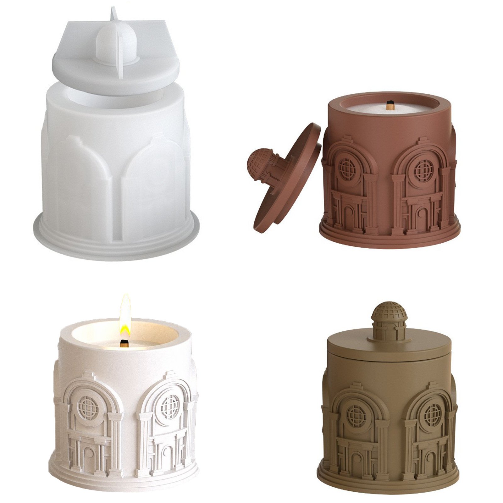 Vedini Concrete European Court House Candle Cup Resin Silicone Mold JKB-3273
