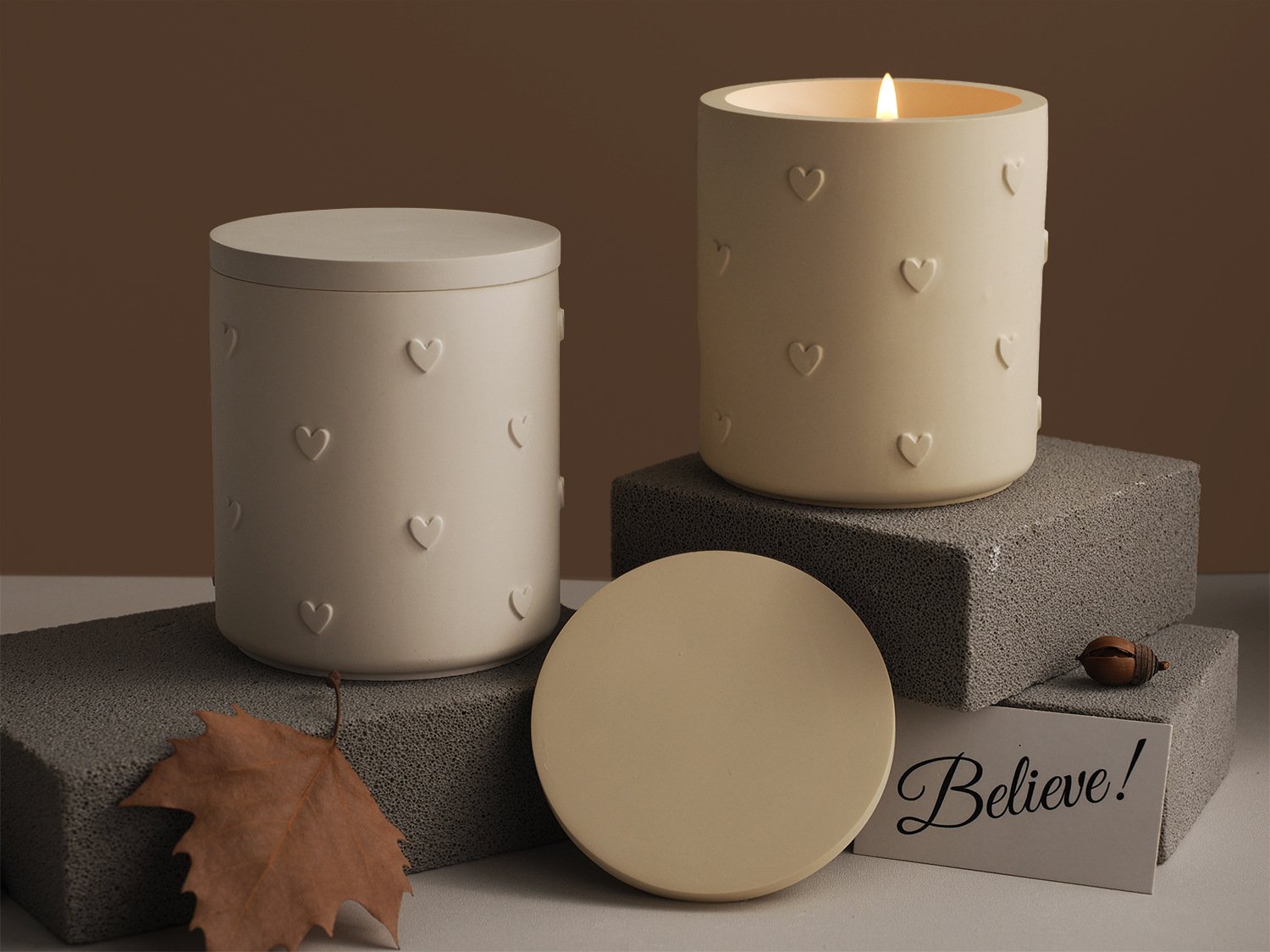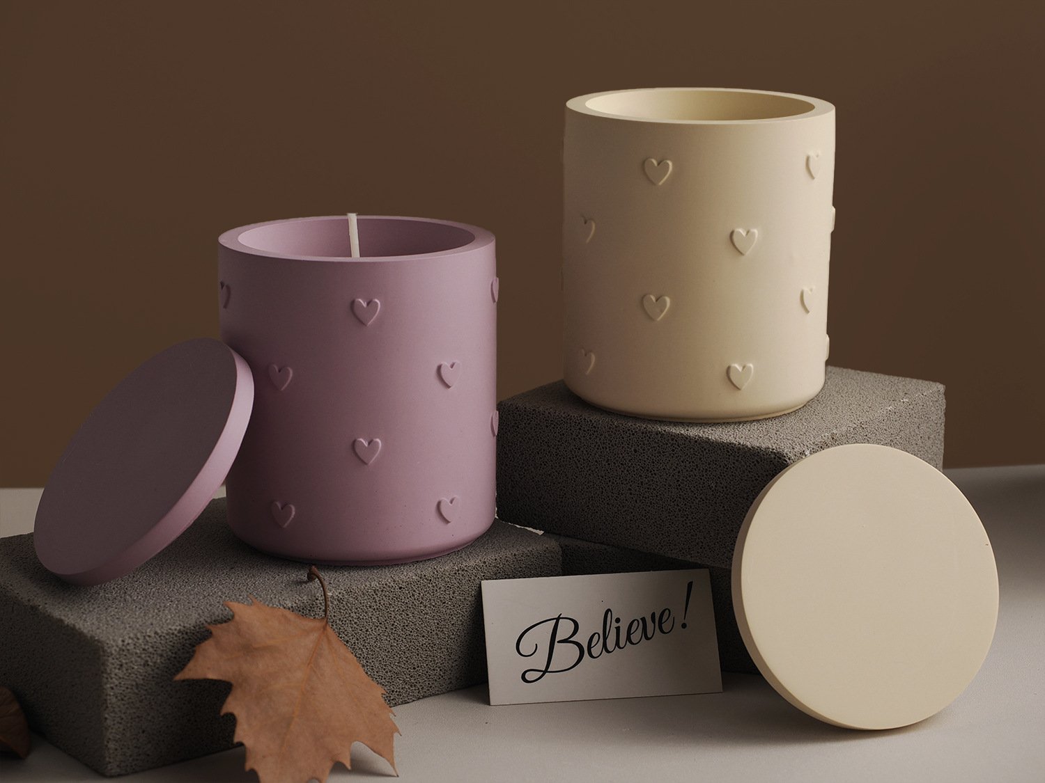 Vedini Concrete Multi Heart Scented Candle Cup Plaster Storage Jar Mirror Silicone Mold JKB-3261