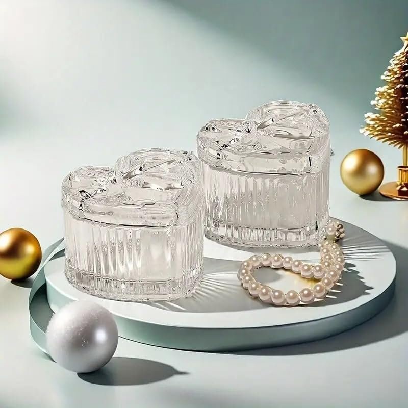 Add a touch of elegance and charm to your storage and gifting with the Vedini Heart Shaped Crystal Glass Jar. Crafted from premium-quality transparent glass with a diamond-cut lid, this decorative jar is perfect for candles, creams, DIY products, or festive return gifts. Its unique heart-shaped design makes it an ideal choice for romantic occasions, parties, or luxury home decor.