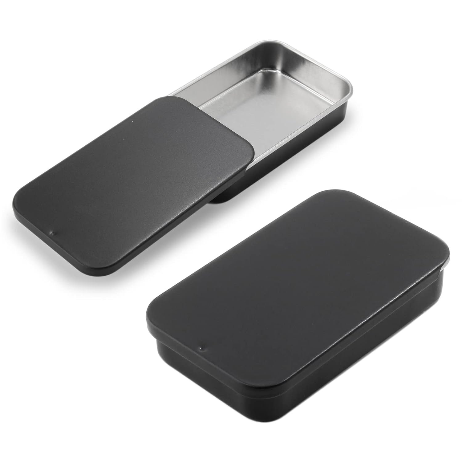 Vedini Black and Silver Metal Tin Containers with Slide Lids – Portable Storage Boxes for Lip Balm, Solid Perfume, Jewelry & Cosmetic Organizing