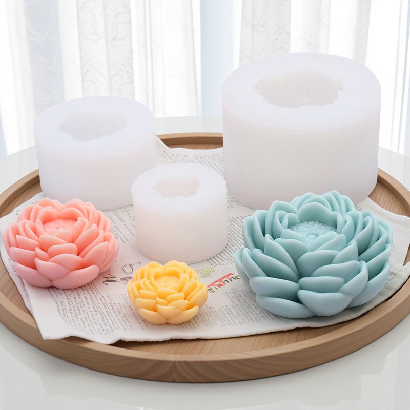 Vedini Medium 3D Stereo Lotus Dropping Glue Candle Mold DIY Resin Lotus Cake Baking Flower Silicone Mold AI068