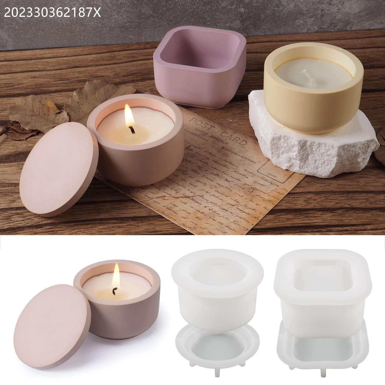 Vedini Silicone Candle Jar Mold with Lid – Round & Square Concrete Candle Container Mold for DIY Resin, Plaster & Soy Wax (JKB 3264)