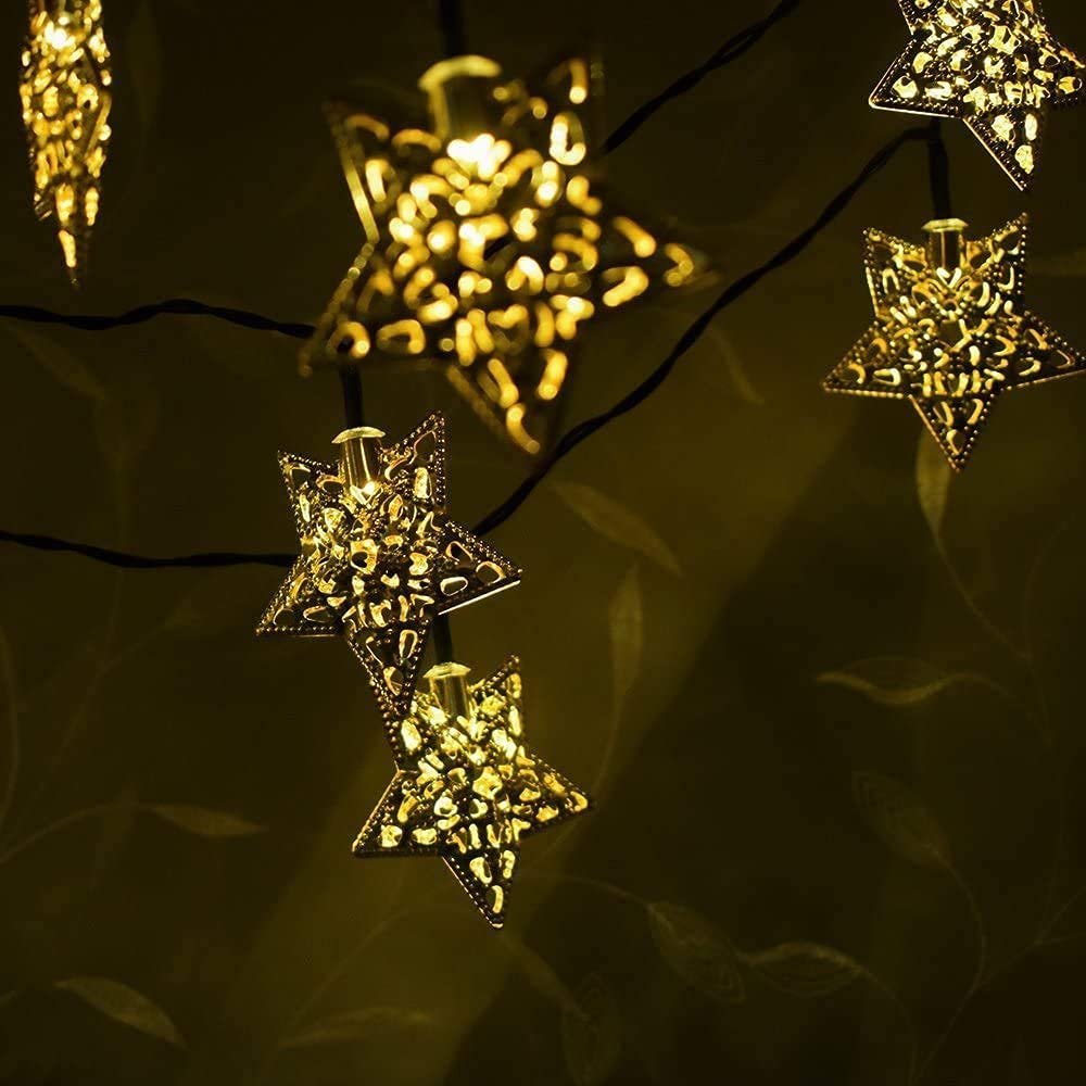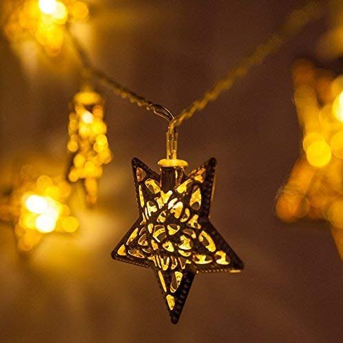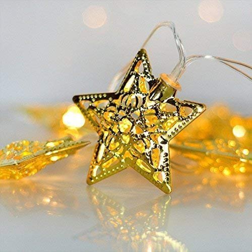Vedini Golden Metal Star Decorative String 10 Led Lights for Diwali Home Hanging Bedroom Birthday Party Decoration JKB 1011