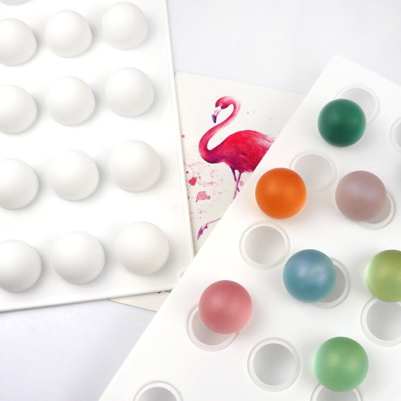 Key specifications/special features: made of food-grade silicone material, innocuous, non-radiate non-stick finish temperature range: -40 to 230 degree c more durable and longer lifespan dishwasher safe shape: (as per stock available) cavities: number of cavities may differ. Dimension: mold tray- 21 x 10.5 cm approx material: high food grade silicone method for preparation: break off pieces of chocolate. Melt the chocolate in the microwave. Fill the cavities of chocolate mold with the chocolate. Tap the mold lightly on the work surface to eliminate air bubbles. Place the mold in the refrigerator for about 20 minutes care & cleaning instructions: never use sharp metal tools to remove or cut food from the mold. Never use mold on direct heat, stovetops, or hot plates. Never clean with abrasive soaps or scouring pads. To clean soak in warm soapy water & wipe clean. In the box: 1x chocolate mould 15 hole Full ball shape silicon resin mold