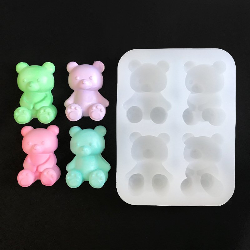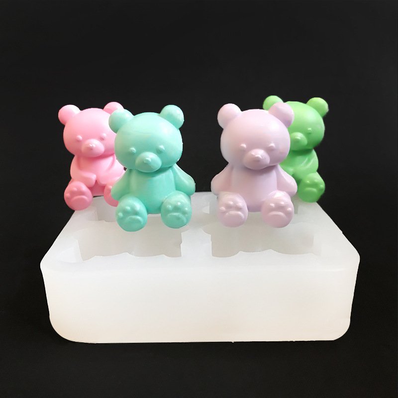 Vedini 4 Cavity small strawberry bear silicone bear mold aromatherapy pendant fondant chocolate cake decoration Mold JKB 5083