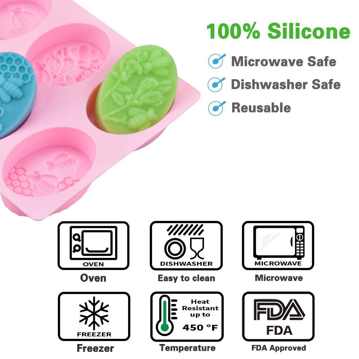 - Package contains 1 pcs food grade oval silicone molds. Makes 6 different pattern bee honeycomb soaps, loaves or muffins at once Honeybee silicone molds