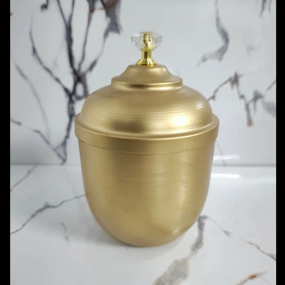 Heat-resistant and reusable, this jar is perfect for soy, beeswax, or paraffin candles, and also doubles as a beautiful holder for dry flowers, spices, or spiritual items after use. Whether you’re a home-based candle maker or running a boutique candle business, this brass jar adds timeless charm to your product offerings. Metal Brass Candle Jar