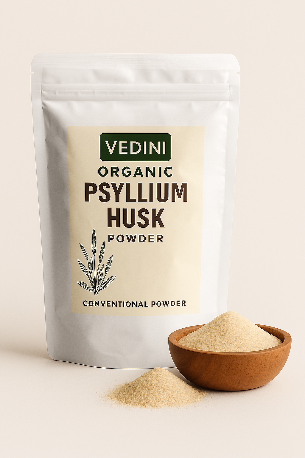 Introduce your daily wellness ritual with Vedini Organic Psyllium Husk Powder – a time-tested natural fiber supplement known for its gut-cleansing benefits and holistic support for digestive health.
