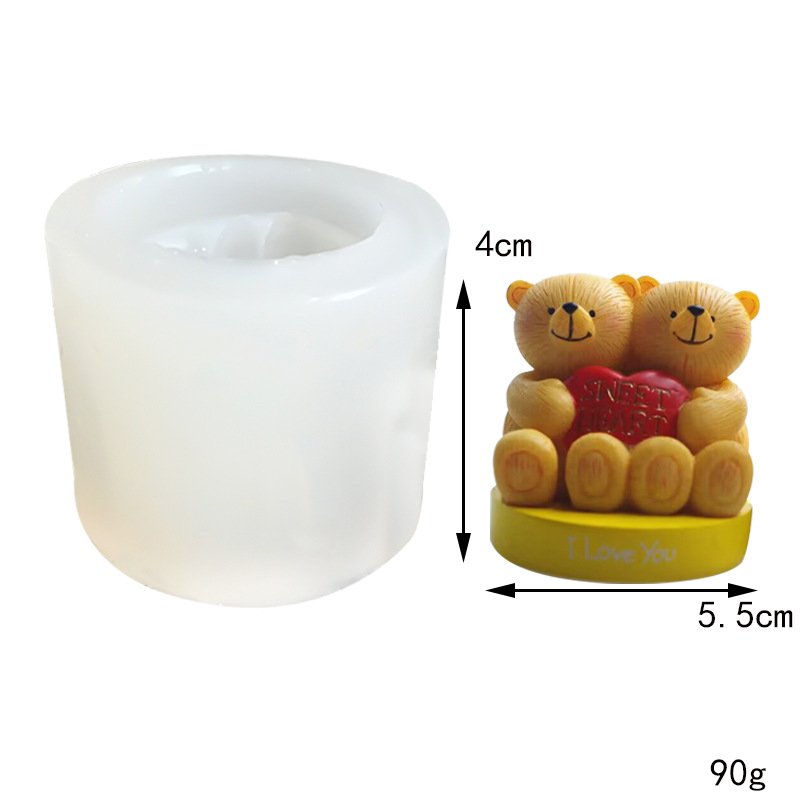 Vedini couple bear teddy with heart candle silicone mold JKB 5085