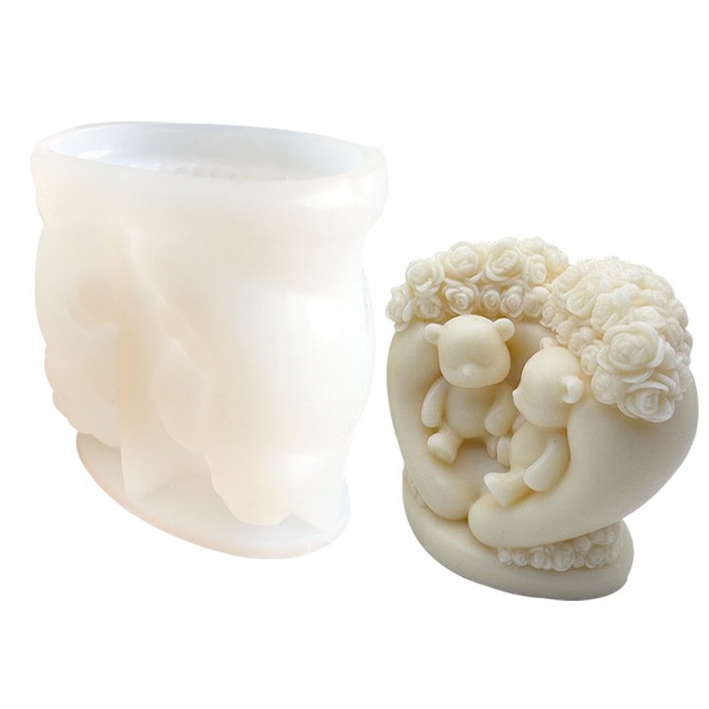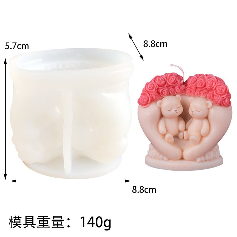 Vedini Rose Love Bear Aromatherapy Candle Mold DIY Love Bear Handmade Soap Candle Epoxy Aromatherapy Silicone Mold JKB 5078